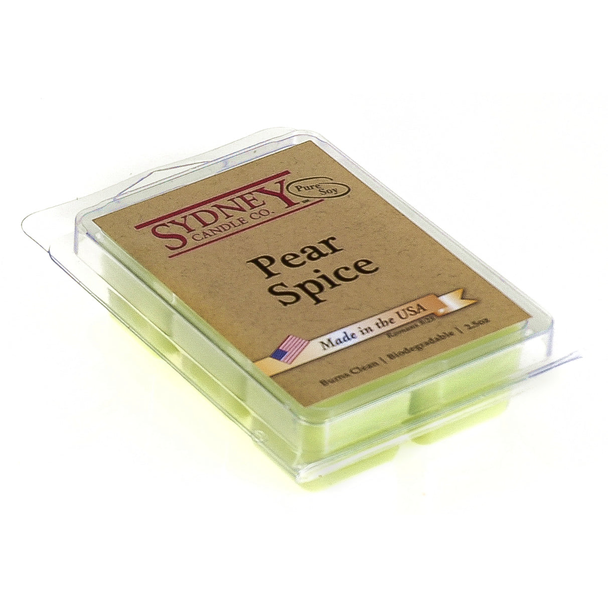 Juicy and tart pears blend with a perfect combination of nutmeg and cinnamon. A tantalizing treat! 100% Pure Soy!