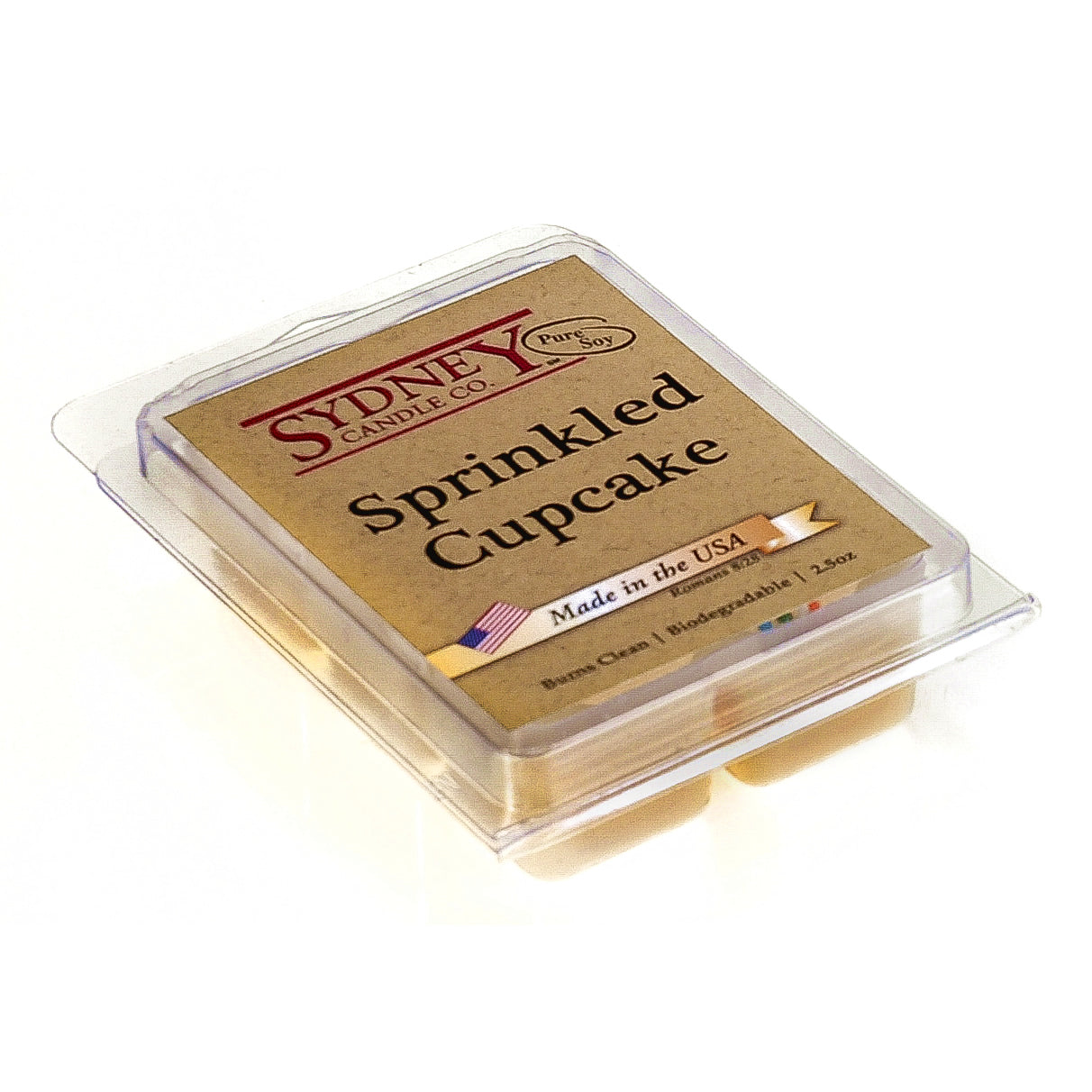 Sweet and moist cupcake with creamy vanilla frosting. White with sprinkles, for a festive touch. 100% Pure Soy!